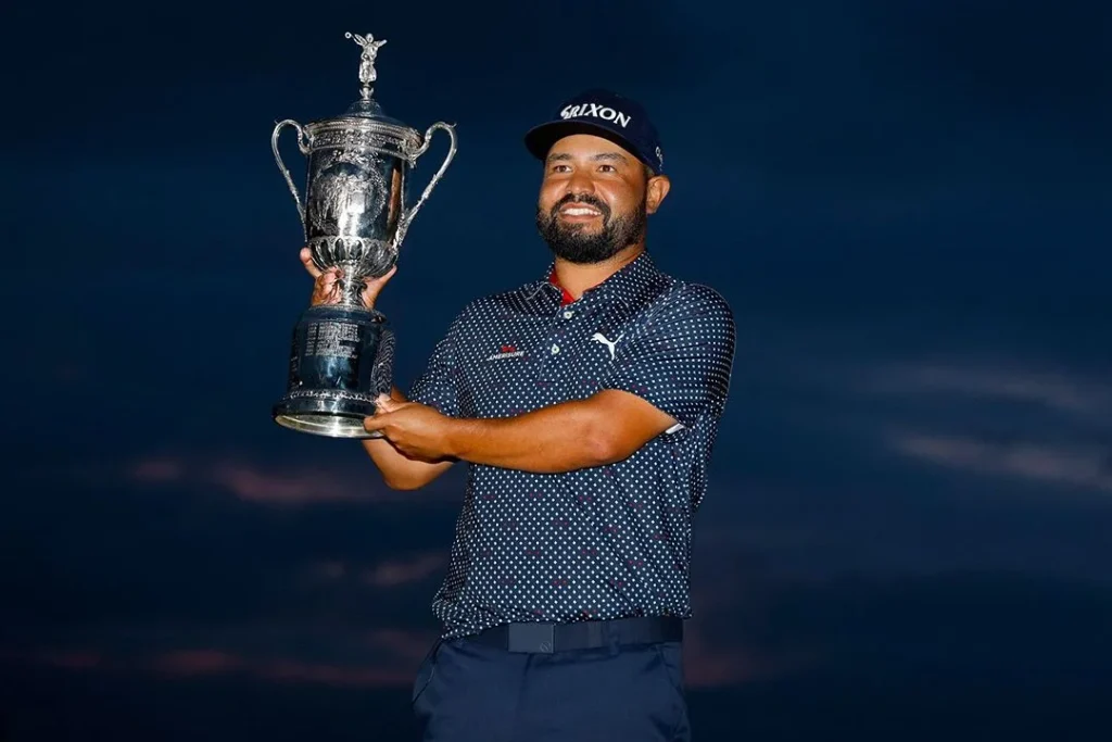 Quien pensó que lo del Players había sido solo una casualidad se equivocó. Semanas más tarde llegó a la ronda final del US Open a un golpe de Sam Burns, en otro domingo lluvioso, pero esta vez en Oakmont. Los 40 golpes que anotó en la ida —el primero desde Francis Ouimet en 1913 en hacer ese score en la ida del día final y terminar ganando— no le auguraban un domingo feliz, pero Spaun recuperó su juego en el regreso y, luego de la suspensión, volvió decidido a ganar el campeonato. Sus propios aciertos —el birdie del 17 fue una perfección— y los errores de sus contrarios lo dejaron con uno de ventaja llegando al temible 18. Bajo la lluvia, Spaun acertó el green, pero se dejó un putt de 64 pies. Necesitaba dos putts y el título era suyo, pero hizo lo impensado: embocó para desatar un festejo alocado.